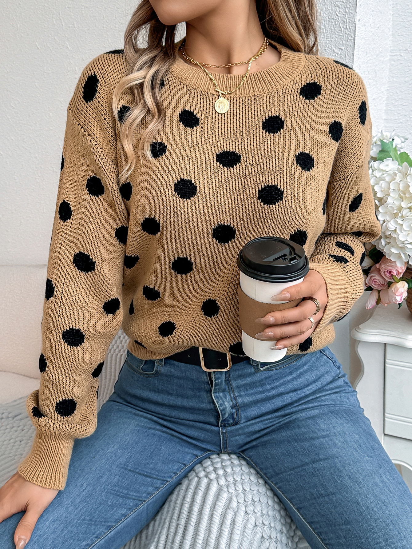 Casual Color Block Polka Dot Long Sleeve Pullover Sweater