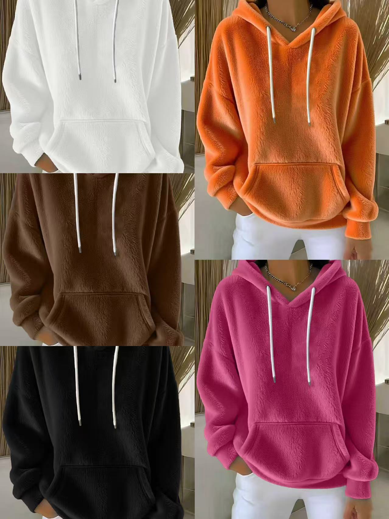 Women's Solid Color Lamb Fleece Lined Versatile Sweatshirt For Autumn And Winter